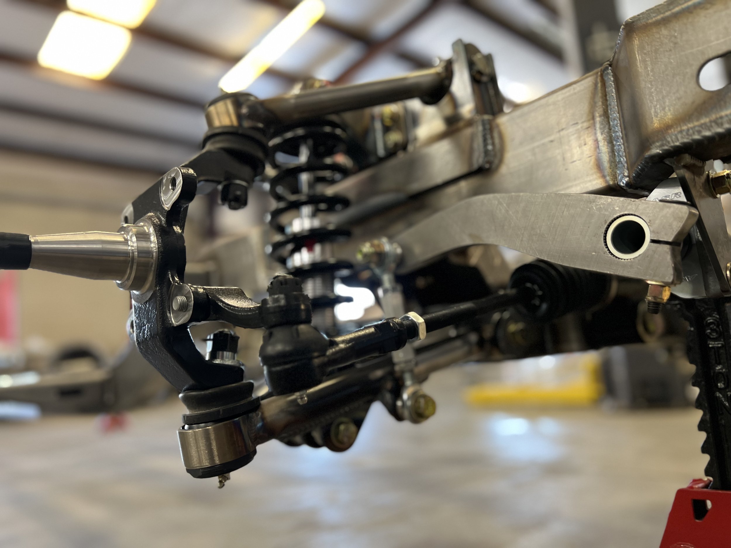 - Grahams exclusive independent front design utilizing eccentric control arm alignment and adjustable upper coil over shock mount